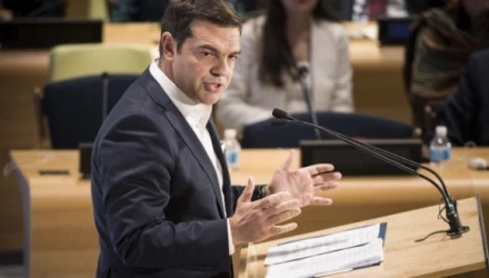 Την ώρα που ο πρωθυπουργός βρισκόταν στο βήμα μια νεαρή μαθήτρια λιποθύμησε. Ο Αλέξης Τσίπρας έσπευσε να δει τι συμβαίνει.