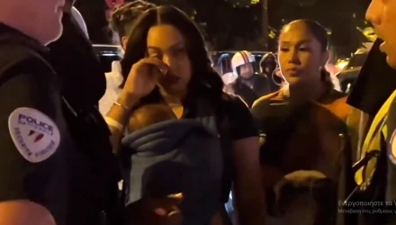 Οι Γάλλοι αστυνομικοί με τη βοήθεια μεταφραστή ακούγονται να λένε «συγγνώμη για το μωρό», ενώ τονίζουν πως ο δρόμος είχε κλείσει για να περάσει ο Γάλλος πρόεδρος, Εμανουέλ Μακρόν, που ήταν επίσης στο γήπεδο για τον τελικό του ολυμπιακού τουρνουά μπάσκετ.