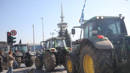 Τα πρώτα τρακτέρ από τα μπλόκα των γύρω περιοχών πέρασαν μπροστά από τον Λευκό Πύργο, κατευθυνόμενα έξω από τη ΔΕΘ, όπου ξεκινά σήμερα η 30η Agrotica.