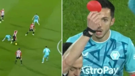 Κόκκινη κάρτα σε στρόγγυλο σχήμα έβγαλε ο διαιτητής στην αναμέτρηση της Μπρέντφορντ με τη Γουλβς στο FA Cup.