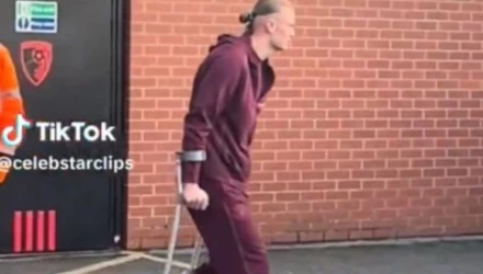 Erling Haaland seen leaving Bournemouth in a protective boot and crutches. 🤕