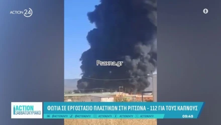 Συναγερμό στην Πυροσβεστική σήμανε το πρωί του Σαββάτου (12/7) φωτιά που ξέσπασε σε εργοστάσιο πλαστικών στη Ριτσώνα.