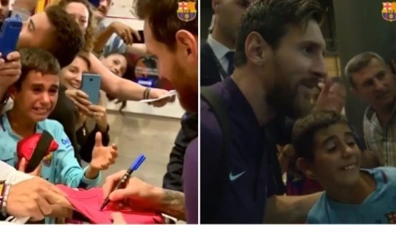 Μεγάλη ήταν η συγκίνηση ενός μικρού θαυμαστή του Λιονέλ Μέσι όταν τον αντίκρισε μετά τη νίκη της Μπαρτσελόνα επί της Βογιαδολίδ (0-1).