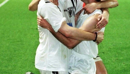ΥΓ. Στη φωτογραφία, Φραζτέσκος, Ζαγοράκης, Τουρσουνίδης, πανηγυρίζουν τη θριαμβευτική πρόκριση επί της Αρσεναλ στο Χάιμπουρι