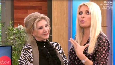 Μόλις η Ελένη Μενεγάκη την είδε, είπε τα καλύτερα για εκείνη. Η καλεσμένη της λύγισε και της είπε: «Με κάνεις να κλαίω» και η παρουσιάστρια τόνισε: «Άσε τα μαντηλάκια! Μην κλαις! Εγώ δεν σε κάνω να κλαις… ίσα, ίσα»!