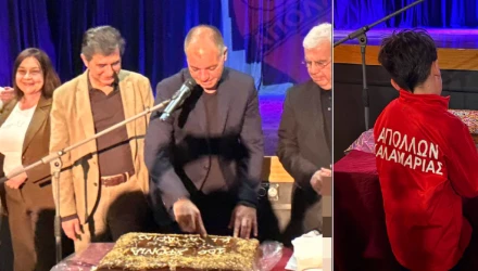 Στο κατάμεστο Δημοτικό Θέατρο Καλαμαριάς «Σταύρος Κουγιουμτζής», ο Απόλλων Καλαμαριάς γιόρτασε τα 100 χρόνια ιστορίας του και έκοψε την πρωτοχρονιάτικη πίτα του.