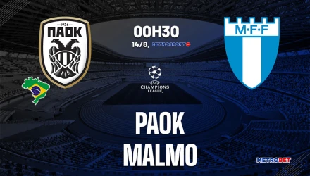 20:30 – ΠΑΟΚ - Μάλμε - 1Χ(Δ) – 1,25