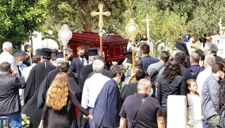 Μέσα στο κοιμητήριο βρισκόταν μόνον η οικογένειά του, η κυρία Σακελλαροπούλου και η υπουργός Πολιτισμού Λίνα Μενδώνη. Ο εγγονός του Άγγελος βρισκόταν στην πόρτα του νεκροταφείου, επιβλέποντας την είσοδο των στενών συγγενών.