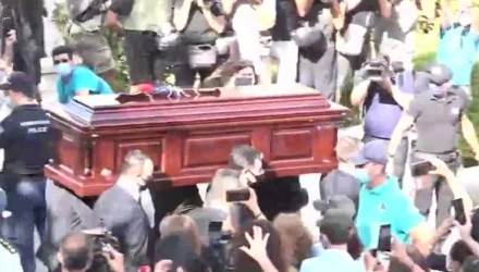 Ο Μίκης Θεοδωράκης ταξιδεύει προς την αιωνιότητα και οι Έλληνες αποτίουν φόρο τιμής στον μεγάλο αυτόν Έλληνα. Κόσμος συρρέει έξω από τη Μητρόπολη Αθηνών για να τον αποχαιρετήσει.
