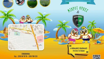 Η συνεργασία του Μακεδονικού με τους Μικρούς Ήρωες επεκτείνεται και στο καλοκαίρι, στις εβδομάδες που σταματούν τα σχολεία και οι προπονήσεις με τον σύλλογο και το παιδί αναζητά τόπο, τρόπο και παρέα για να εκτονωθεί και να διασκεδάσει δημιουργικά! Η λύση βρίσκεται στις εγκαταστάσεις του Μακεδονικού.