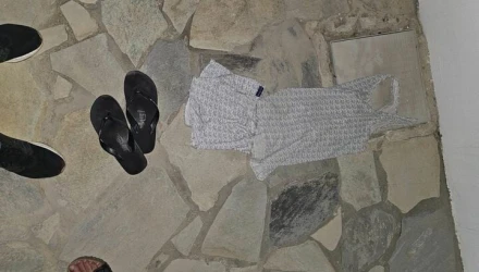 Στην φωτογραφία θα δείτε τα ρούχα και τις σαγιοναρες που φορούσε και έβγαλε (και αφησε) στην αυλή του σπιτιού πριν μπει μέσα. Τα ίδια ρούχα φορούσε και προχθές που τον είδαν να είναι στην αυλή ενός άλλου σπιτιού.