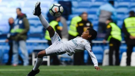Συγκεκριμένα, μπήκε στο χορτάρι του «Σαντιάγο Μπερναμπέου», μετά τη λήξη του Ρεάλ-Ατλέτικο και απογειώθηκε σε ανάποδο ψαλίδι, όπως ο πατέρας του κόντρα στη Γιουβέντους.