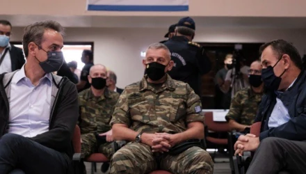 Λίγες ώρες μετά τη λήξη της Συνόδου Κορυφής, όπου συζητήθηκαν οι αλλεπάλληλες προκλήσεις της Τουρκίας, ο Πρωθυπουργός σε μία κίνηση υψηλού συμβολισμού, επισκέφθηκε τα ελληνοτουρκικά σύνορα στον Έβρο στην περιοχή των Φερρών. Ο κ. Μητσοτάκηςενημερώθηκε για την εξέλιξη του έργου κατασκευής του φράχτη, τις προδιαγραφές, καθώς και το χρονοδιάγραμμα ολοκλήρωσής του. Το συγκεκριμένο έργο θωρακίζει το νότιο τμήμα της συνοριογραμμής με την Τουρκία.