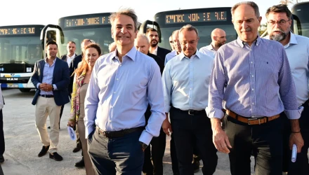 Στο αμαξοστάσιο των νέων λεωφορείων των περιαστικών διαδρομών του ΟΑΣΑ στο Κορωπί βρέθηκε σήμερα στις 07:30 το πρωί ο πρωθυπουργός Κυριάκος Μητσοτάκης.