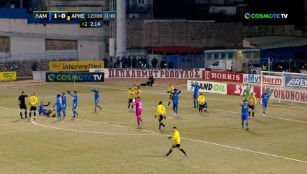 Η Λαμία προηγήθηκε με γκολ του Άνταμ Τζανετόπουλου στο 118', όμως ο Άρης είχε την ευκαιρία να ισοφαρίσει και να πάρει την πρόκριση στην τετράδα του Κυπέλλου, αλλά μάταια, καθώς ο Μπρούνο Γκάμα νικήθηκε από τα έντεκα βήματα από τον Σαράνοφ και υπέστη οδυνηρό αποκλεισμό.