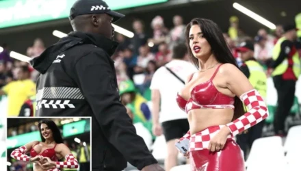Η σέξι Κροάτισσα βρέθηκε στις κερκίδες του Education City Stadium στα χρώματα της χώρας της αλλά φαίνεται πως αντιμετώπισε κάποιους μπελάδες, καθώς εθεάθη να μιλά με ανθρώπους της ασφάλειας που της ζήτησαν να επιστρέψει στη θέση της.