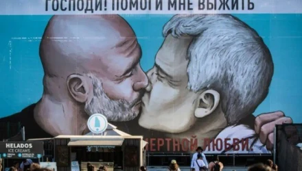 Η τοιχογραφία είναι εμπνευσμένη από την εικόνα του πρώην ηγέτη της Σοβιετικής Ένωσης Λεονίντ Μπρέζνιεφ και του πρώην ομόλογό του στη Λαϊκή Δημοκρατία της Γερμανίας Έριχ Χόνεκερ στο Τείχος του Βερολίνου.