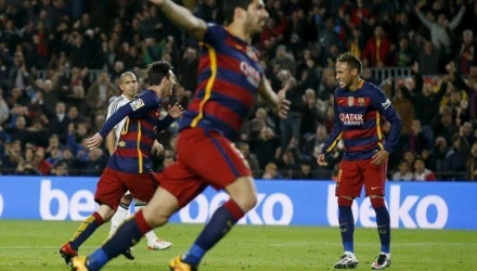 Μόλις στο 7ο λεπτό οι Καταλανοί έφυγαν στην κόντρα, ο Νεϊμάρ έδωσε στον Σουάρες που εκτέλεσε ιδανικά από πλάγια θέση και έκανε το 1-0. Πέντε λεπτά μετά ήρθε το δεύτερο γκολ. Αφού άλλαξαν εντυπωσιακά την μπάλα ο Μπουσκέτς με μαγική μπαλιά βρήκε τον Βιδάλ που έκοψε μέσα στην περιοχή για τον Σουάρες ο οποίος βρήκε και πάλι στόχο.