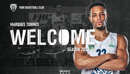 Η ΚΑΕ ΠΑΟΚ mateco ανακοινώνει την συμφωνία με τον Marques Townes μέχρι το τέλος της αγωνιστικής περιόδου 2023-24.O Townes αναμένεται σήμερα στη Θεσσαλονίκη και θα ενισχύσει την προσπάθεια της ομάδας μας σε Πρωτάθλημα και Κύπελλο Ελλάδας.