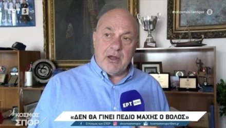 Ο Δήμαρχος Βόλου, Αχιλλέας Μπέος μίλησε στην κάμερα της ΕΡΤ για τις προσπάθειες οπαδών της ΑΕΚ και του ΠΑΟΚ να βρεθούν είτε κοντά στα ξενοδοχεία των ομάδων, είτε στο Πανθεσσαλικό.
