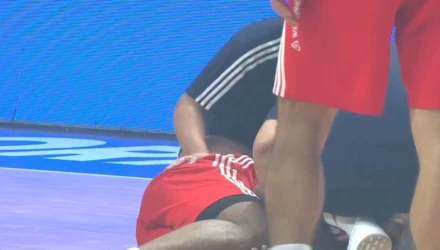 Οι διαιτητές έχουν αποσυρθεί στα αποδυτήρια και φαίνεται ότι μέρος των κερκίδων θα πρέπει να αδειάσει. Από το γήπεδο έχουν αποχωρήσει και οι παίκτες του Ερυθρού Αστέρα. Σαν να μην έφταναν αυτά, ο Τζόελ Μπολομπόι τραυματίστηκε και αποχώρησε από το γήπεδο υποβασταζόμενος. Ο Σέντερ του Ερυθρού Αστέρα τραυματίστηκε στο γόνατο και βρέθηκε πεσμένος στο παρκέ για αρκετή ώρα. Υπάρχουν φόβοι για κάτι σοβαρό, με την ανησυχία στις τάξεις των «ερυθρολεύκων» να είναι έντονη.