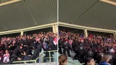Επεισόδια συνέβησαν στο χθεσινό παιχνίδι μεταξύ Αυστρίας και Κροατίας, εκεί όπου φίλαθλοι των φιλοξενούμενων δημιούργησαν αναταραχή με αποτέλεσμα να επέμβουν αστυνομικοί και να δημιουργηθεί άγρια συμπλοκή στις κερκίδες του Σταδίου Ερνστ Χάπελ.