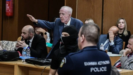 Ναζιστικό χαιρετισμό έκανε ο συνήγορος του Γιάννη Λαγού, Κ. Πλεύρης κατά τη διάρκεια της δίκης της Χρυσής Αυγής προτού καν η έδρα απομακρυνθεί από τη δικαστική αίθουσα και προκάλεσε την αντίδραση των παρευρισκομένων.