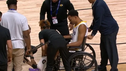 Σοκαριστικός τραυματισμός για τον Ντάριους Μπέιζλι, στην αναμέτρηση των Λέικερς απέναντι στους Σέλτικς στη Summer League του NBA.