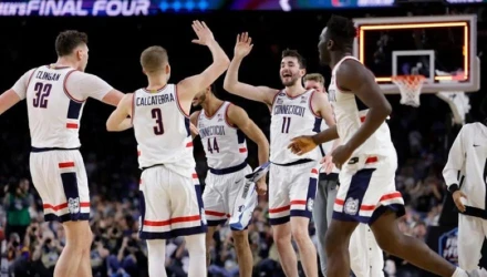 Την κατάκτηση του φετινού τίτλου στο NCAA πανηγύρισε το Κονέκτικατ επικρατώντας με 76-59 των Σαν Ντιέγκο Στέιτ στον στο «NRG Stadium» του Χιούστον. Στους πρωταθλητές αγωνίζεται και ο πρώην παίκτης του ΠΑΟΚ, Απόστολος Ρούμογλου.