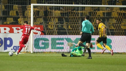 Ο Φοσέ χρίστηκε σκόρερ καθώς βγήκε στην πλάτη της άμυνας του Αρη, αλλά όπως φάνηκε από το ριπλέι της συνδρομητικής τηλεόρασης, ο παίκτης των «Ακριτών» ήταν πιο μπροστά από την αμυντική γραμμή των κιτρίνων.