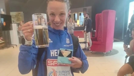 Η Αντιγόνη Ντρισμπιώτη λίγη ώρα μετά την κατάκτηση του χρυσού μεταλλίου στα 20 χλμ, βάδην, χρειαζόταν μια γερμανική μπύρα για να ξεδιψάσει. Και γι΄ αυτό φρόντισαν τα μέλη της εθνικής ομάδας, στη νέα υποδοχή που ετοίμασαν στην 38χρονη κατά την επιστροφή της στο ξενοδοχείο, όπου έχει καταλύσει η ελληνική αποστολή στο Μόναχο.