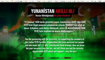 Οι Τούρκοι χάκερς αναφέρονται και πάλι στους 8 Τούρκους αξιωματικούς που είναι στην Ελλάδα και έχουν ζητήσει άσυλο. Κατηγορούν την Ελλάδα ότι συμπράττει με τους πραξικοπηματίες και απειλούν και πάλι να μας ρίξουν όλους στη θάλασσα όπως έκαναν και με τους προγόνους μας…