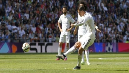 Ο Κριστιάνο Ρονάλντο με απευθείας εκτέλεση φάουλ που ξεγέλασε τον Ιρουρέτα, άνοιξε το σκορ στο 21ο λεπτό. Είναι η δέκατη φορά που βάζει μπροστά τους "μερένγκες",την τρέχουσα σεζόν στη Liga. Ο Πορτογάλος χρειάστηκε ούτε λίγο ούτε πολύ, 56 αποτυχημένες εκτελέσεις μέχρι να στείλει την μπάλα στα δίχτυα, ξανά μετά από εκτέλεση φάουλ. Το τελευταίο γκολ με φάουλ του Πορτογάλου στη Liga, ήταν κόντρα στη Σεβίλλη, στις 26 Μαρτίου του 2014.