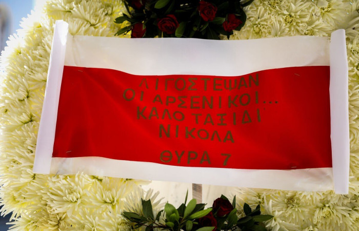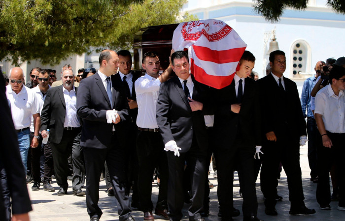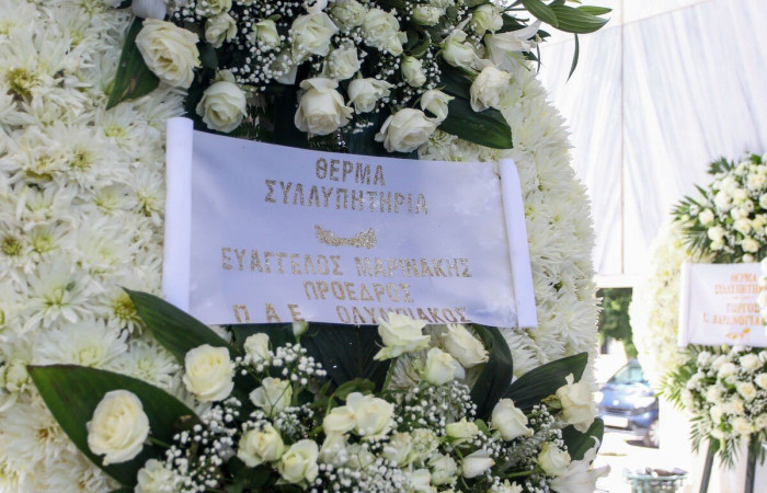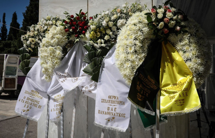 Φίλοι και συγγενείς τον αποχαιρέτησαν πριν το μεγάλο ταξίδι και η εκκλησία γέμισε με στεφάνια από τους μεγάλους του ποδοσφαίρου που συνεργάστηκε, όπως τους Κόκκαλη, Βαρδινογιάννη, Μαρινάκη αλλά και από Ολυμπιακό και Παναθηναϊκό.