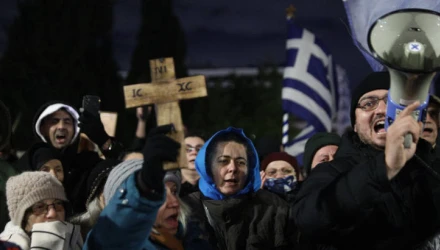 Οι συγκεντρωμένοι κρατούν πλακάτ με συνθήματα όπως: «Πατρίδα, θρησκεία, οικογένεια» αλλά και σταυρούς και χριστιανικές εικόνες. Διαβάστε περισσότερα στο Mynews.gr