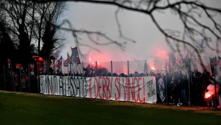 Οι 300 περίπου οπαδοί των «Ροσονέρι» αψήφησαν τα μέτρα κατά της εξάπλωσης του κορωνοϊού με στόχο να βρεθούν όσο πιο κοντά γίνεται στους ποδοσφαιριστές του Στέφανο Πιόλι, «σηκώνοντας» μάλιστα και ένα πανό που έγραφε χαρακτηριστικά, «90 λεπτά για επίθεση, το ντέρμπι πρέπει να κερδηθεί».