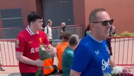 Μεταξύ αυτών βρέθηκε και ένας φίλος της Έβερτον, μισητής αντιπάλου της Λίβερπουλ που θέλησε να αφήσει και αυτός λίγα λουλούδια, τιμώντας τη μνήμη του αδικοχαμένου ποδοσφαιριστή.