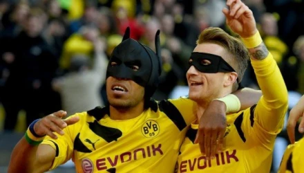 Ότι δεν έκανε σε 77 λεπτά, η Ντόρτμουντ το έκανε σε 8 λεπτά, πετυχαίνοντας τρία γκολ απέναντι στη «μισητή» Σάλκε (3-0) στο ντέρμπι της Κοιλάδας του Ρουρ και έφτασε τις τέσσερις συνεχόμενες νίκες στο πρωτάθλημα. Η αρχή έγινε στο 78ο λεπτό με τον Ομπαμεγιάνκ, ωστόσο όλα τα λεφτά ήταν ο πανηγυρισμός του παρέα με τον Ρόις, φορώντας μάσκες του Μπάτμαν και του Ρόμπιν. Δύο λεπτά μετά ο Μιχιταριάν διπλασίασε τα τέρματα της ομάδας του και το κερασάκι στην τούρτα εβαλε ο Ρόις στο 86΄ έπειτα από τραγικό λάθος του γκολκίπερ των φιλοξενούμενων. Από την πλευρά της η Σάλκε αγνοεί τη νίκη εδώ και τρεις αγωνιστικές και έπεσε στην 5η θέση της βαθμολογίας μετά τη νίκη της Λεβερκούζεν επί της Φράιμπουργκ (1-0).