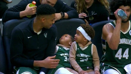 Ο Αντετοκούνμπο έβαλε τα παιδιά του στον πάγκο των Μπακς την ώρα του αγώνα