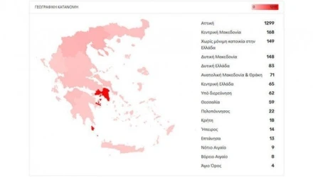 Όσο για τη γεωγραφική κατανομή των επιβεβαιωμένων κρουσμάτων, η Αττική συγκεντρώνει τη συντριπτική πλειοψηφία των περιπτώσεων, με συνολικά 1299 ασθενείς.