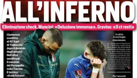 Ο αποκλεισμός των Ιταλών από δεύτερο διαδοχικό Παγκόσμιο Κύπελλο κοσμεί τα πρωτοσέλιδα του διεθνούς τύπου.