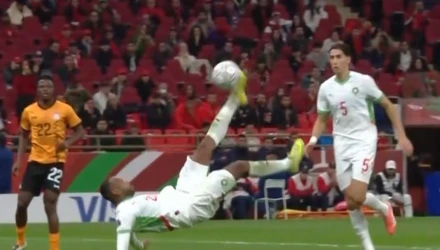 Σεληνιασμένος ο επιθετικός του Ολυμπιακού, πετυχαίνει το τρίτο του γκολ στην διοργάνωση και το δεύτερο με ανάποδο ψαλίδι. Ο Μαροκινός φορ πέτυχε ξανά γκολ με ανάποδο ψαλιδάκι στο Copa Africa, αυτή τη φορά απέναντι στη Ζάμπια!