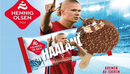 Στο διαφημιστικό του παγωτού- Χάλααντ Νορβηγοί φίλαθλοι τρώνε το ξυλάκι έξω από το γήπεδο, βλέποντας ματς στην τηλεόραση ή και στις κερκίδες κατά τη διάρκεια αγώνα, ενώ στο τέλος εμφανίζεται ο σούπερ σταρ της Σίτι να κρατάει το παγωτό φορώντας τη φανέλα της Εθνικής ομάδας της χώρας του.