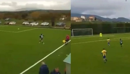 Ο νεαρός κεντρικός αμυντικός του Παναθηναϊκού ανέλαβε την εκτέλεση φάουλ από τα 70 μέτρα και σημείωσε ένα από τα πιο εντυπωσιακά γκολ , έχοντας και τη βοήθεια του αέρα.