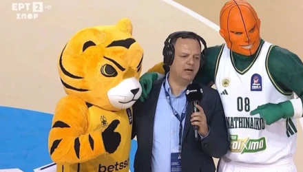 Ατάραχος Νάτου: Μετέφραζε αγκαλιά με τις μασκότ Άρη και Παναθηναϊκού