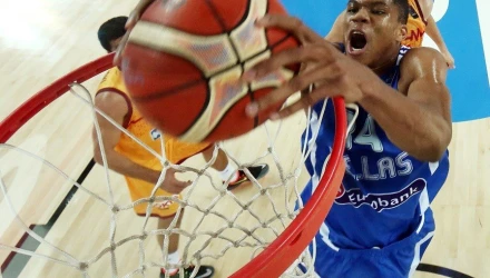Η ελληνική ομάδα έφυγε στον αιφνιδιασμό, ο Καλάθης πάσαρε και ο Αντετοκούνμπο τελείωσε τη φάση με εξαιρετικό κάρφωμα.