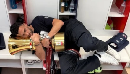 Ο Λυκογιάννης δημοσίευσε μια φωτογραφία στα social media που τον δείχνει να μην αποχωρίζεται το τρόπαιο του Coppa Italia.