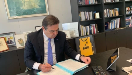 Ο κ. Σχοινάς έλαβε τη θρυλική εμφάνιση του Αυτοκράτορα στις Βρυξέλες, έδρα της Κομισιόν της οποίας είναι αντιπρόεδρος, και ευχαρίστησε τον Ερασιτέχνη για αυτήν την κίνηση με επιστολή που έστειλε στον πρόεδρο του Α.Σ., Λευτέρη Αρβανίτη, όπου και εξέφρασε τη χαρά του για τη φανέλα.