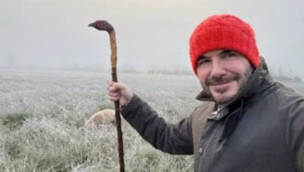 Ο Ντέιβιντ Μπέκαμ ανέβασε στον λογαριασμό του φωτογραφίες από τη βόλτα που έβγαλε τα τέσσερα σκυλιά του, φορώντας ένα κόκκινο σκούφο και κρατώντας μία γκλίτσα στο χέρι του.