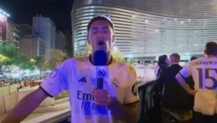 Ο 20χρονος μεσοεπιθετικός εμφανίστηκε στην κάμερα για να κάνει δηλώσεις πάνω στο πούλμαν και όπως φάνηκε είχε πιει αρκετές μπίρες. Αν και… τύφλα κατάφερε να ευχαριστήσει τους φιλάθλους της Ρεάλ και έπειτα αγκάλιασε τον δημοσιογράφο στον οποίο μίλησε!